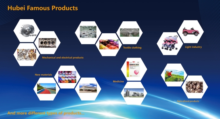 China `s Hubei province as a major manufacturing province, proposes to build a "51020" modern industrial system.That is, 5 trillion-level pillar industries, 10 500-billion-level advantageous industries, and 20 100-billion-level characteristic industrial clusters.Optical core screen terminal network, automobile manufacturing, modern industry and energy, massive health, modern agricultural product processing, they are gearing up to go to the world through the "Online Silk Road" of hbtrade. Twenty-three provincial foreign trade transformation and upgrading demonstration bases and characteristic industry cluster areas • Agricultural and aquatic products Wuhan Bee Products Export Base Wuhan Tea Products Export Base Wuhan Aquatic Products Export Base Xiangyang Nanzhang Agricultural Products (Edible Fungi) Foreign Trade Transformation and Upgrading Demonstration Base Xiangyang Yicheng Agricultural Products (Edible Fungi) Foreign Trade Transformation and Upgrading Demonstration Base Egg Export Base of Gongan County of Jingzhou City Shendan Egg Products Export Base of Xiaogan City Quality and Safety Demonstration Zone of Export Food and Agricultural Products of Yingshan County, Huanggang City Demonstration Area of Agricultural Products in Suizhou Export Base of Selenium Products in Hubei Province Enshi Tea Export Base Lichuan Tea Export Base Xianfeng Tea Export Base Xiantao Aquatic Products Export Base • Mechanical and electrical products Automobile and Parts Foreign Trade Transformation and Upgrading Base of Shiyan Economic Development Zone Xiangyang Automobile and Parts Export Base Suizhou Automobile and Parts Base Xiantao Mechanical and Electrical Products Export Base • Textile clothing Xiangyang Textile Clothing Parts Foreign Trade Transformation and Upgrading Demonstration Base Xiangyang Nanzhang Fine Chemical Products Foreign Trade Transformation and Upgrading Demonstration Base • Light industry Xiaogan Hanchuan Light Industry (Baby Carriage) Export Base • New materials Xiantao New Chemical Materials Export Demonstration Base • Medicine Huangshi Pharmaceutical Chemical Transformation and Upgrading Demonstration Base As an online platform for Hubei Province's comprehensive foreign trade comprehensive service project, hbtrade is a government public service platform led by the Hubei Provincial Department of Commerce,it is also an important position for Hubei Province to optimize the foreign trade business environment.Hbtrade's overseas platform is mainly for the consumer market in the United States, Japan, the United Kingdom, Germany, and Singapore,and sells related products of textile, electronic products, machinery manufacturing, light industry and other categories."Hbtrade" aims to provide products with both quality, price and service for global users.